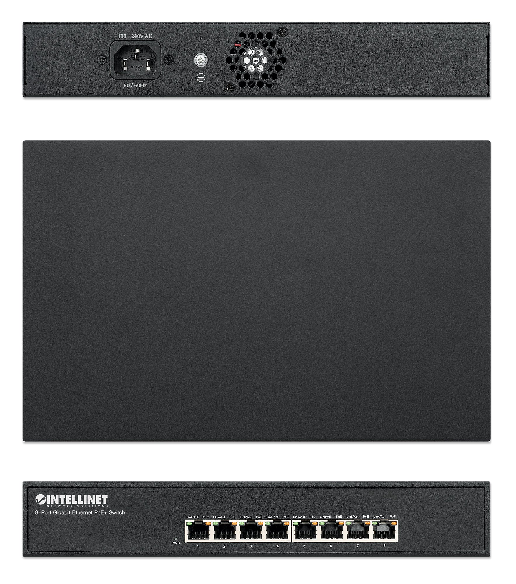 The Intellinet Network Solutions 8-Port Gigabit Ethernet PoE+ Switch is designed to pass both data and electrical power to a number of PoE-compatible devices via standard Cat5e or Cat6 network cables. Equipped with eight Gigabit Ethernet ports, this switch can power wireless LAN access points and bridges, VoIP phones, IP video cameras and more while delivering network speeds of up to 1000 Mbps.