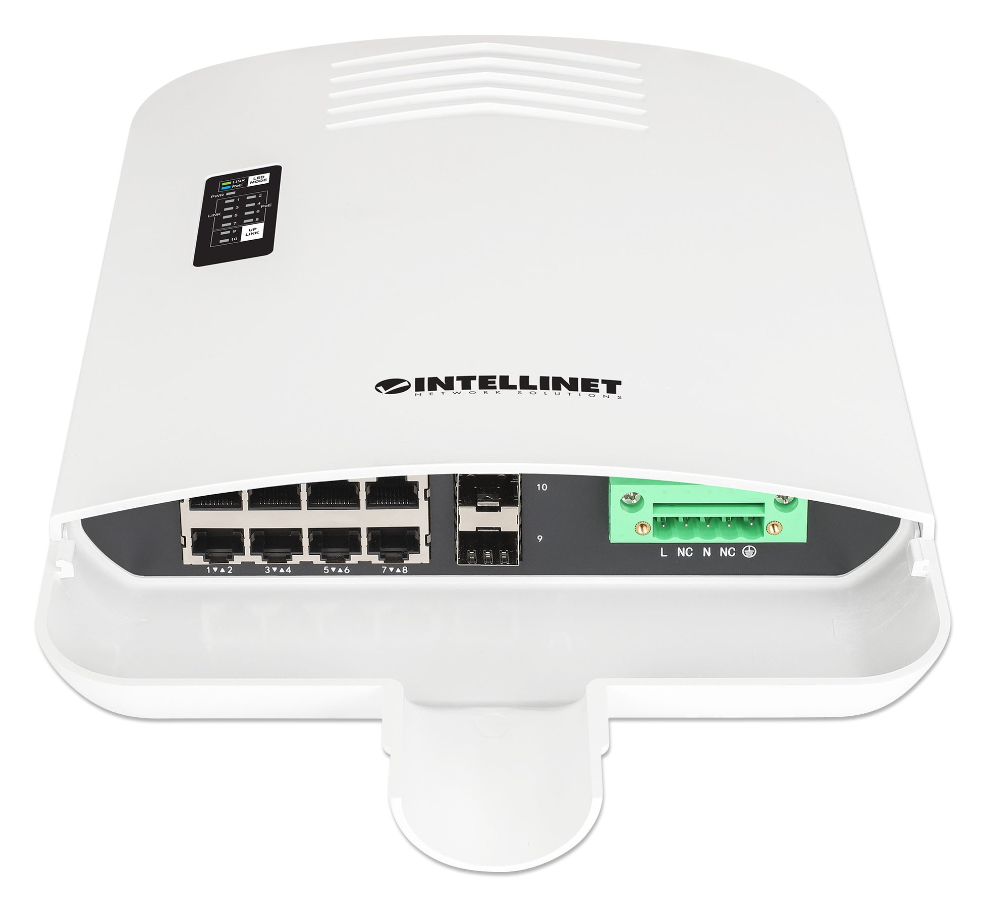 - Outdoor 10-Port L2+ Smart Managed PoE+ Switch with 8 Gigabit Ethernet Ports and 2 SFP Uplinks