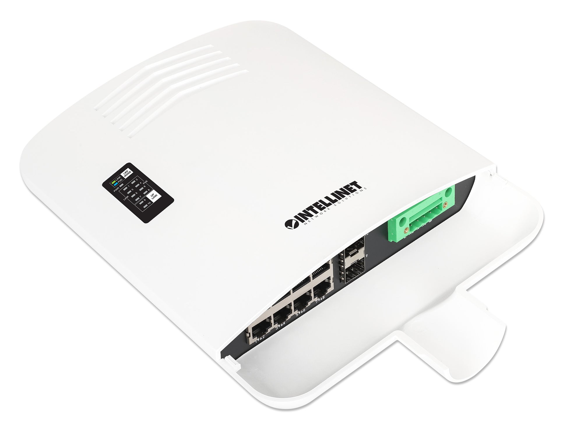 The Outdoor 10-Port L2+ Fully Managed PoE+ Switch from Intellinet Network Solutions is built for reliability and performance in challenging environments. Designed with eight Gigabit Ethernet ports and two 1G SFP uplinks, this rainproof, dustproof, and impact-resistant switch is perfect for powering and connecting IP cameras, wireless access points, VoIP phones, and other PoE devices. Its IP65 and NEMA 4-rated enclosure ensures protection against harsh weather, dust, and moisture, making it an ideal solution for outdoor installations on walls or poles.