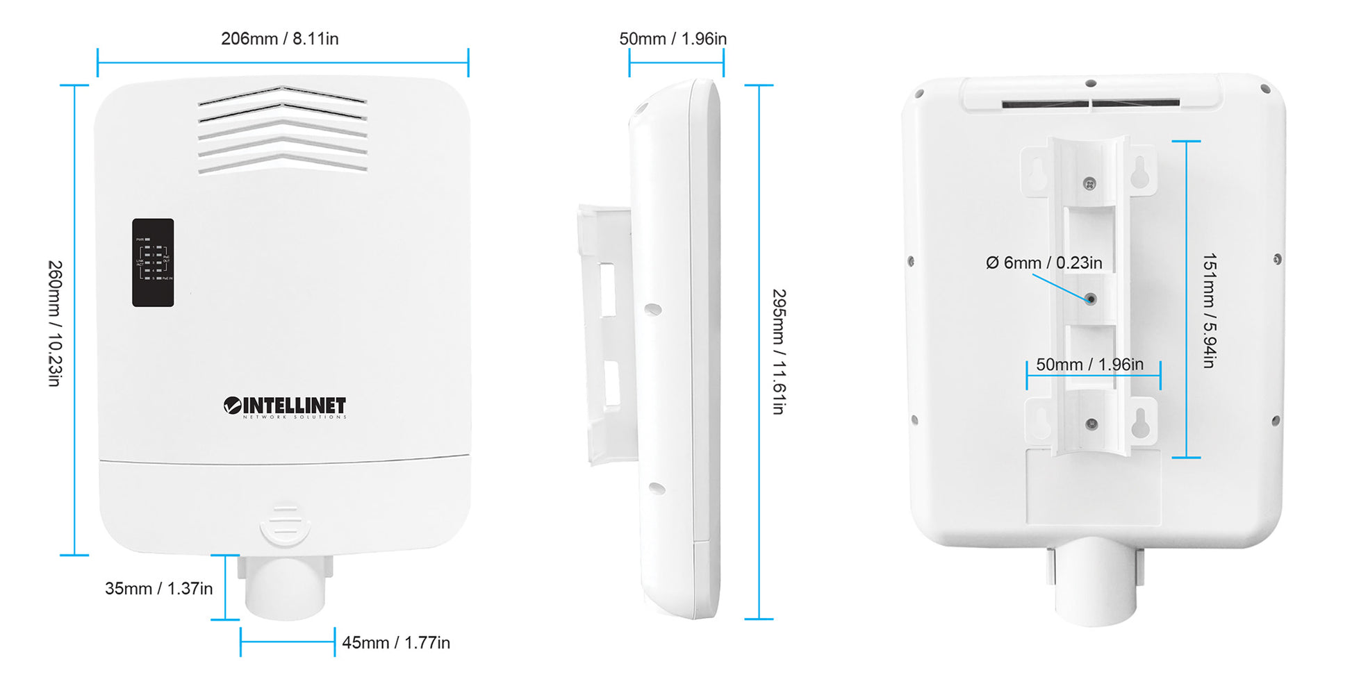 For full installation flexibility, you can mount the switch on the wall or a pole through its built-in bracket with mounting holes.